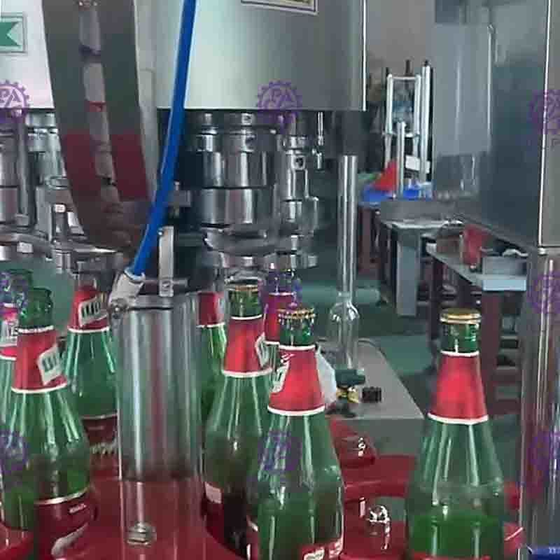 स्वचालित क्राउन कैप सीलिंग मशीन कांच की बोतल को क्राउन कैप, प्रेस कैप से सील करने के लिए डिज़ाइन की गई है।
